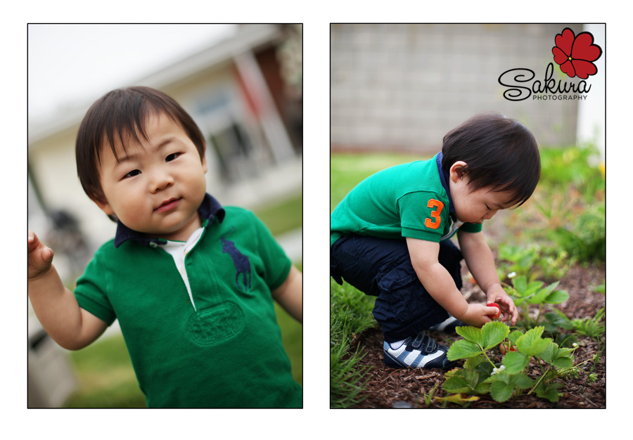 I had a little visitor the other day. He came over after his mommy and I had a nice lunch. He seemed to enjoy picking strawberries from our yard and running around with his finger in his cheek.
